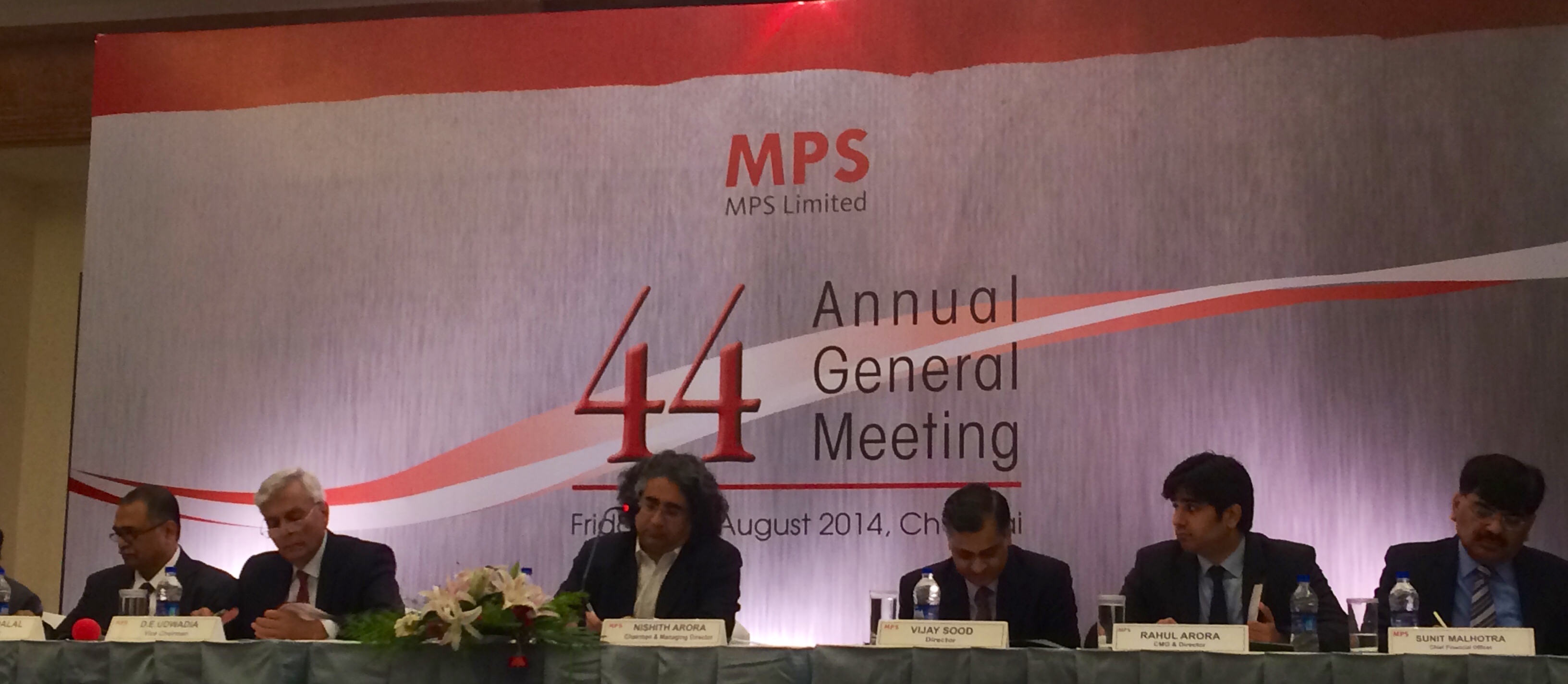 MPS has been growing from strength to strength for the last 2 years. I got in on the stock at about 115 a share and the company has not disappointed since then. The company aside, I’ve really begun to admire Nishith Arora. He states his plan and achieves it, and keeps you informed along the way. I also got to watch him closely during the recent AGM in Chennai, and despite the stupidest, longest and most insane questions about the company posed by some marginal investors, i never once saw him loose his cool or disregard any question. Fantastic quality.